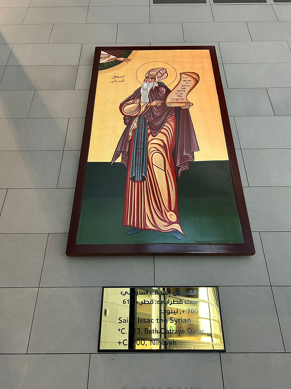 Over a year ago, Bishop Aldo Berardi may have already foreseen the importance of this great saint when he commissioned an icon of St. Isaac for the Cathedral of Our Lady of Arabia. Thoughtfully placed in the foyer, opposite the icon of St. Arethas of Najran, this icon creates a meaningful dialogue between these two saints, both with deep roots in the region. St. Isaac’s teachings on divine mercy and humility complement the steadfast faith embodied by St. Arethas, fostering a deeper appreciation of the region’s spiritual heritage. Visitors to the cathedral, who may not have initially noticed the icon, are now invited to contemplate its significance as St. Isaac’s inclusion in the martyrology brings it renewed attention and veneration.